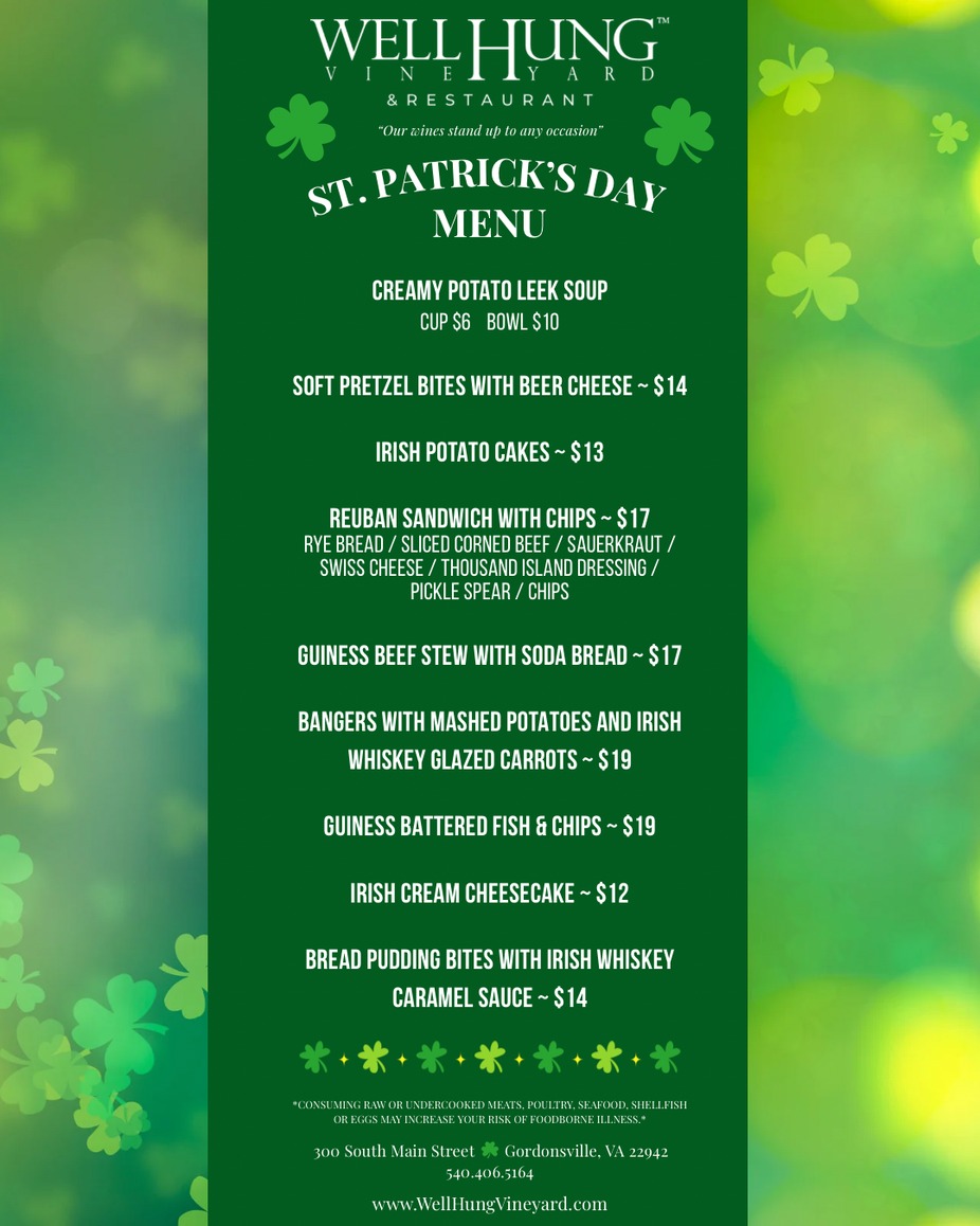 We're excited about our St. Patricks menu - Runs Friday - March 13th through March 17th!